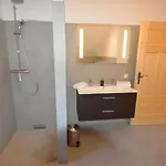 Les salles de bains de Sauna Chalet Ahorn comprennent également un bidet, une douche et une machine à laver. Un sèche-cheveux et des draps de bain font également partie des articles de toilette.